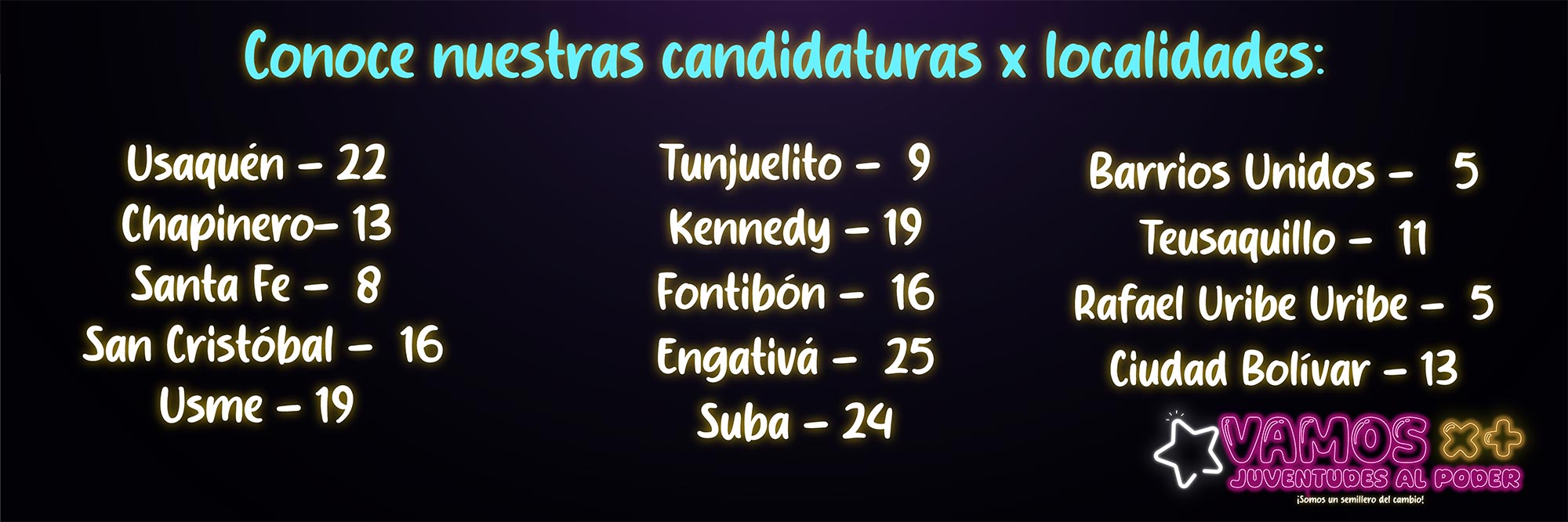 Selecciona en el mapa una de las localidades para ver l@s candidat@s de Vamos x+ a los Consejos de Juventud en Bogotá